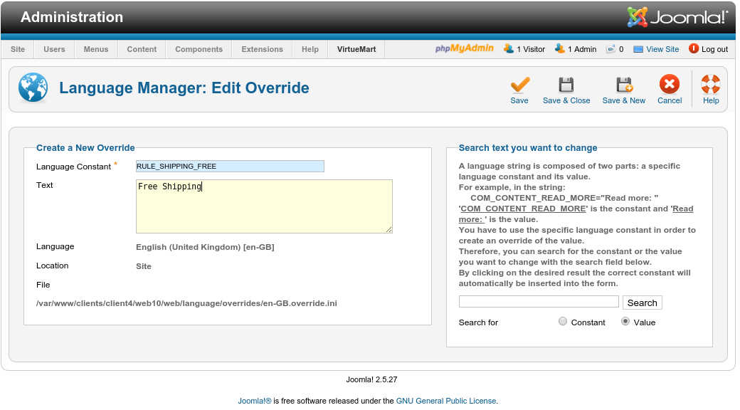 2014-10-23: Version 4.3: Add support for Joomla 3 and VirtueMart 3 (at least version 2.9.9f required); Drop support for Joomla 1.5