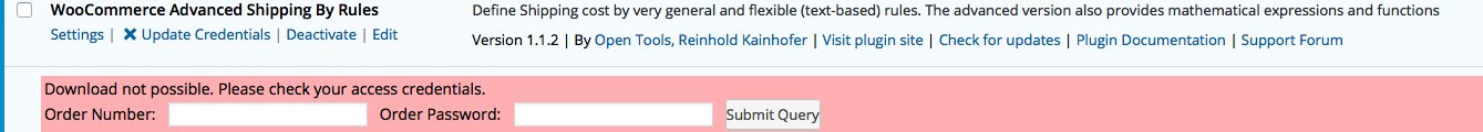 Trying to setup in Wordpress so that updates can be automatically downloaded? I have my order no and I have the password I used when making the purchase , but they don't seem to be what is required. Can you advise. See screenshot. Thanks Tim |