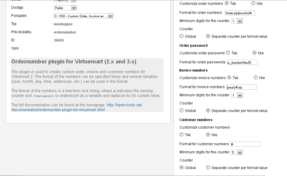 That's due to technical reasons, because VM does not provide that information to the plugins in the function that sets the order number... For the invoice, using the [zip] variable (notice that you need to enclose all variables in square brackets to distinguish them from normal text!) should work. So your format for the invoice numbers should be "[year]-#[zip]" Best regards, Reinhold |