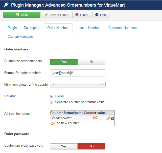 Additionally find attached a screenshot of the "Order Numbers" tab in the joomla backend