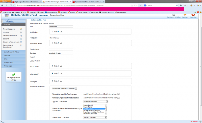 Ebenso wäre ein Screenshot der Produkteinstellungen zum Custom Field nützlich (der letzte Tab bei den Produktdetails im Backend).