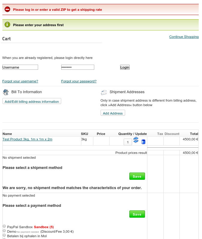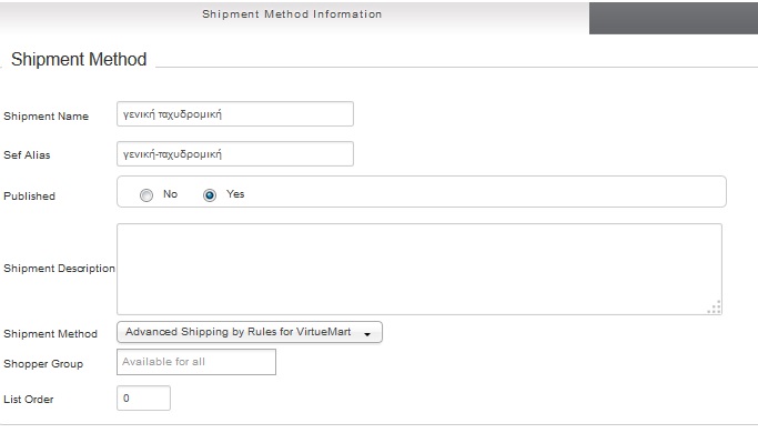 It seems to me that it is configured as "Available to all" please see the attachement. Further more the configuration is as follows: Name=Please enter a valid ZIP to get a shipping rate; ZIP<=0; NoShipping Name=Αθήνα {weight}; 10000<=ZIP<19999; Weight<=2; Shipping=8; Name=Αθήνα {weight}; 10000<=ZIP<19999; Weight > 2; Shipping=((ceil(weight))-2)*2.46+8 Name=Εκτός Αθήνας {weight}; 20000<=ZIP< 80000; Weight<=2; Shipping=13.90; Name=Εκτός Αθήνας {weight}; 20000<=ZIP< 80000; Weight > 2; Shipping=((ceil(weight))-2)*4.31+13.90 If a user logs-in the method works fine. What seems to be wrong? Regards, Dennis |