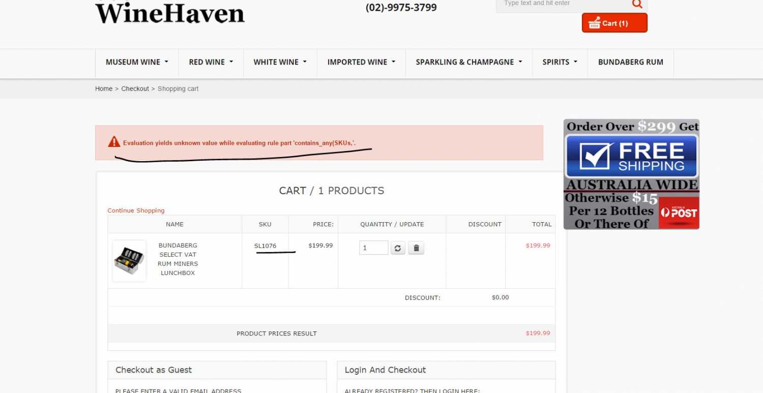 Are you sure you are using the advanced version of the plugin for the shipping method? In particular, lists like SKUs and the contains_any function are only available in the advanced version, so if you set the shipping method to use the free version of the plugin, you would get exactly this error message. Best regards, Reinhold |