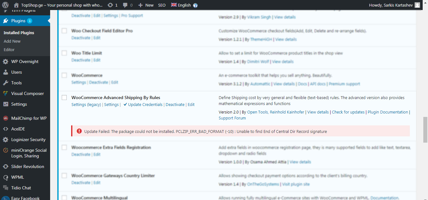 Hello I recived updates on the plugin WooCommerce Advanced Shipping By Rules, while updating I see this error "An error occurred while updating WooCommerce Advanced Shipping By Rules: The package could not be installed. PCLZIP_ERR_BAD_FORMAT (-10) : Unable to find End of Central Dir Record signature." How can I resolve this issue can you help me?