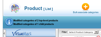 - "VirtueMart start page (Backend)" - Check the categories of all products whenever you visit VirtueMart's main page in the Backend (in the administrator area)