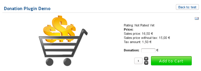 - The product page will now display an entry box, where the user can enter the donation amount they want to add to the product price: